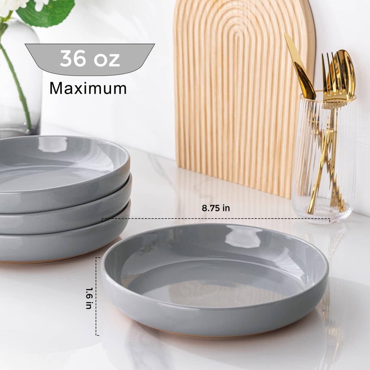 AmorArc 8.75'' Large Ceramic Pasta Bowls, 38oz Handpainted Stoneware Bowls Set of 4, Microwave&Dishwasher Safe Bowls with Rustic Terracotta Underside for Pasta Salad, White(Limestone)
