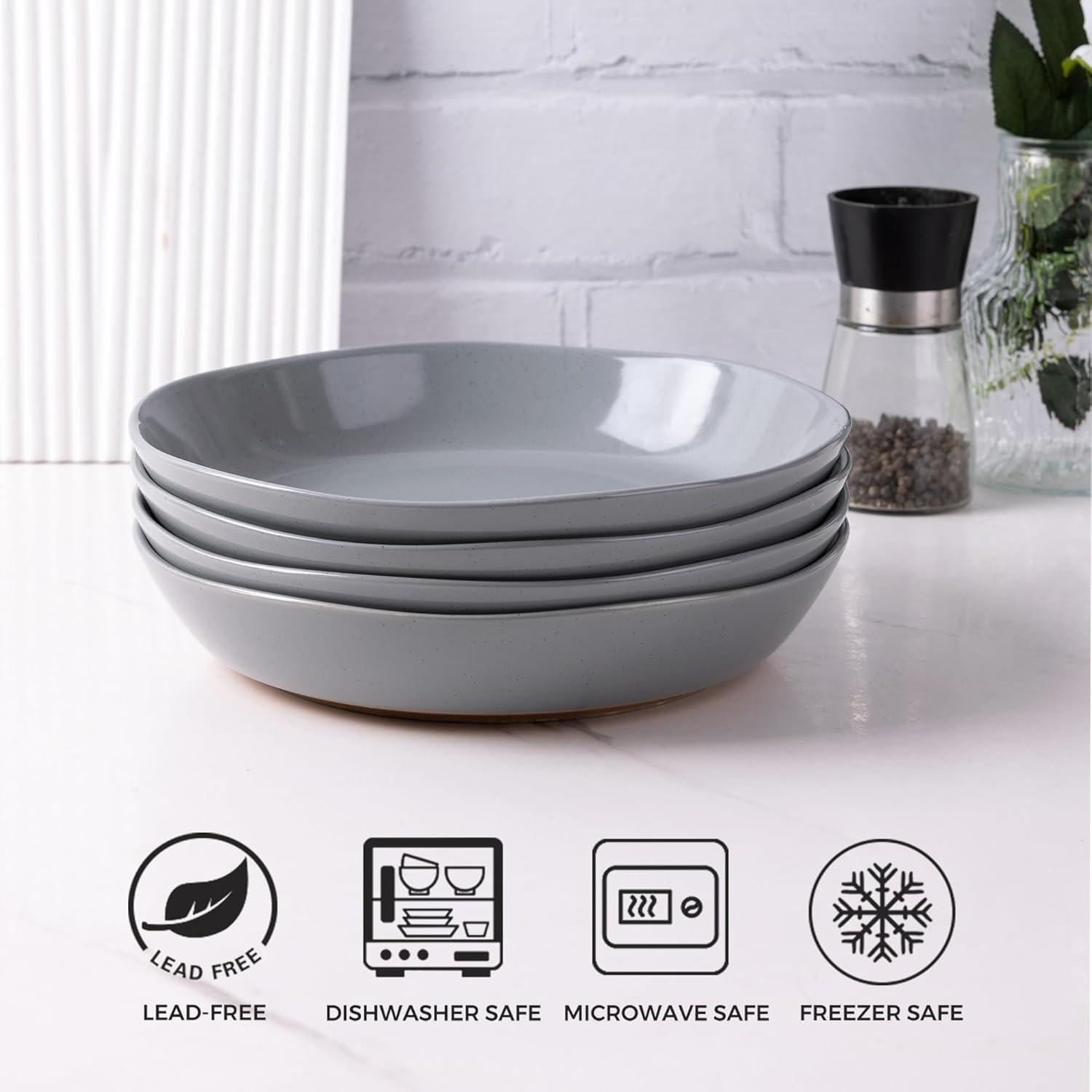 UNIQUE DESIGN WITH WAVE RIM:These Pasta Bowls are designed by professional artist,The beautiful speckled glaze feels comfortably, It looks fantastic on the table and brightens up your kitchen. It perfect for daily using and special occasion.