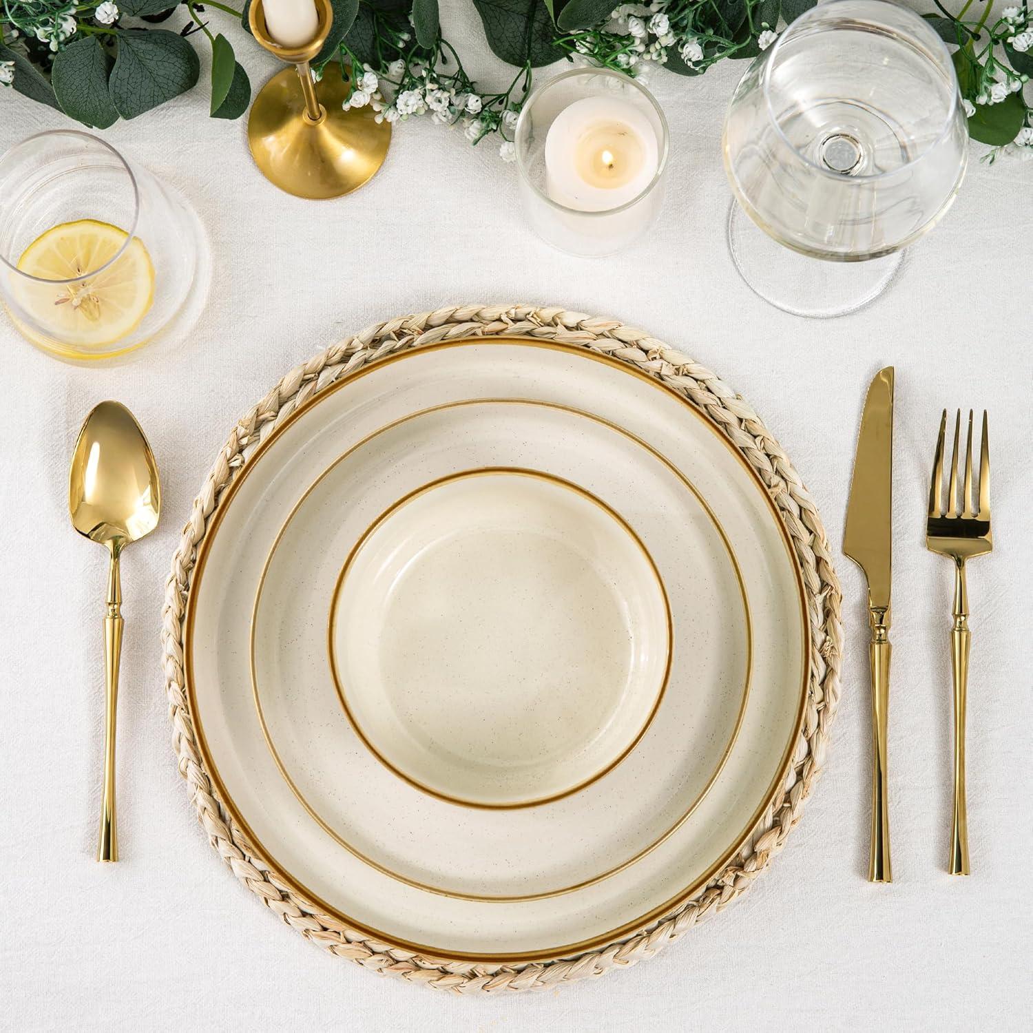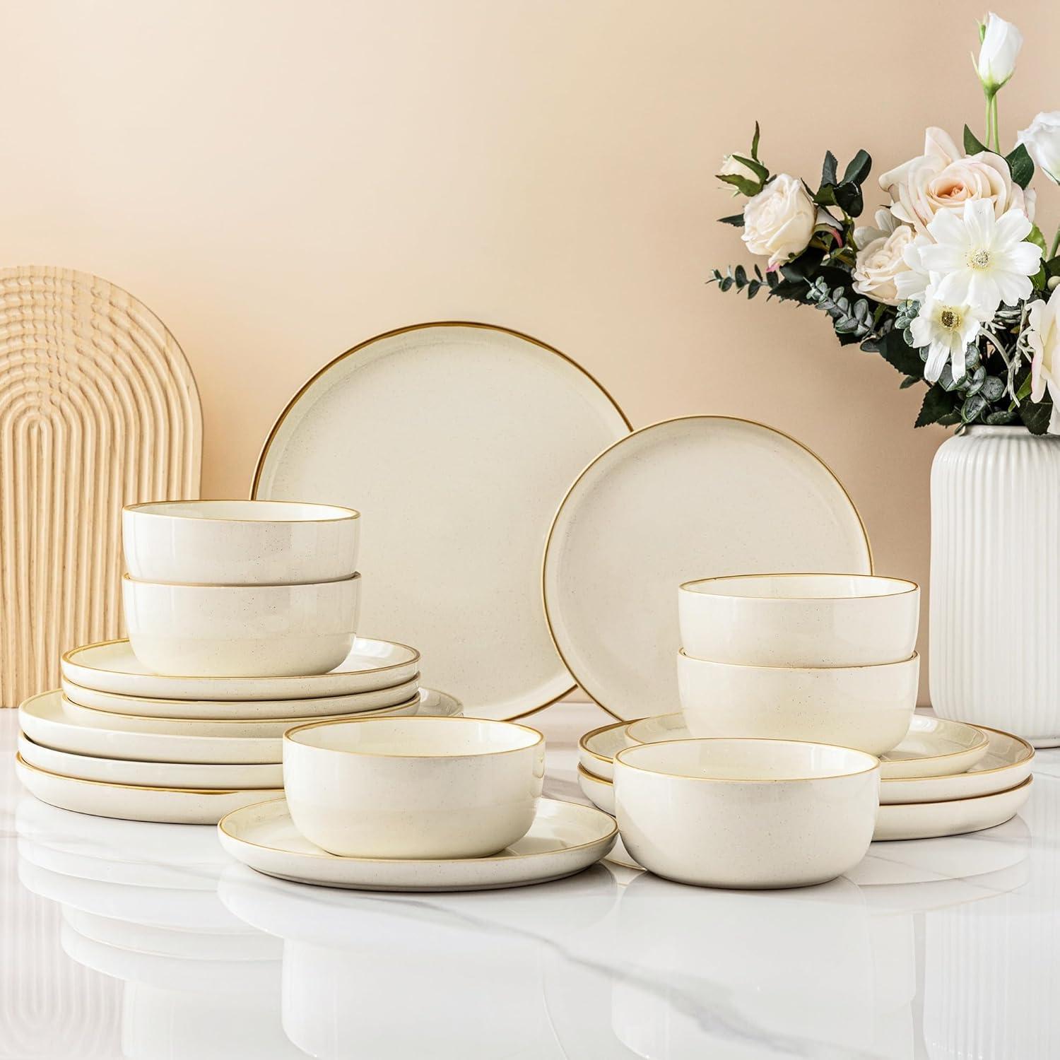 ELEGANT AND MODERN:Our dinnerware set features a unique design with two different glazes. The surface of the plates is white, while the edges and the bottom cover are adorned with another beautiful color. This plate and bowl set will make your dining table look more elegant and modern, enhancing the appearance and enjoyment of your meals. Perfect for housewarmings, Thanksgiving, Christmas, and other festive celebrations.