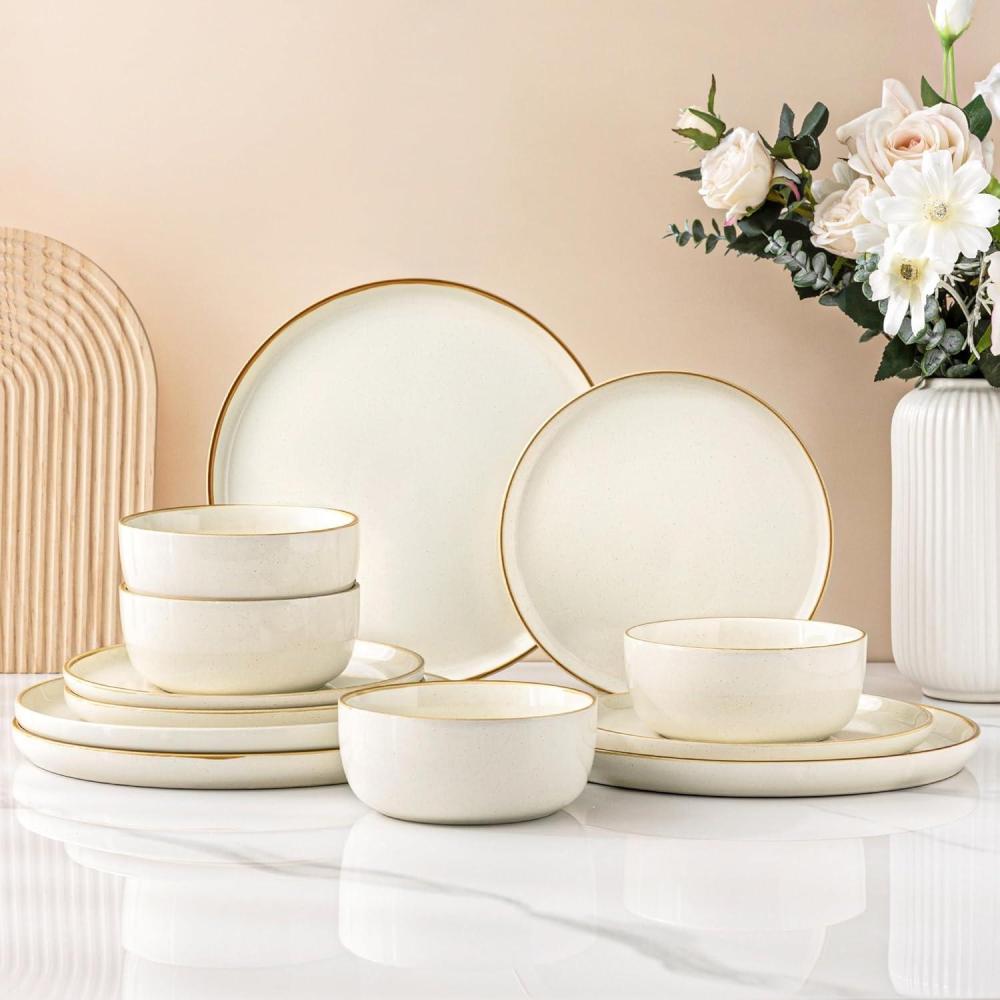 WHAT WILL YOU RECEIVE: 12 pieces dinnerware sets includes 4 x 10.25 inch dinner plates,4 x 8.25 inch salad plates and 4 x 24 oz cereal bowls, Ideal for small families, couples, or individuals, this 4-place settings dish set perfectly meets your dining needs.