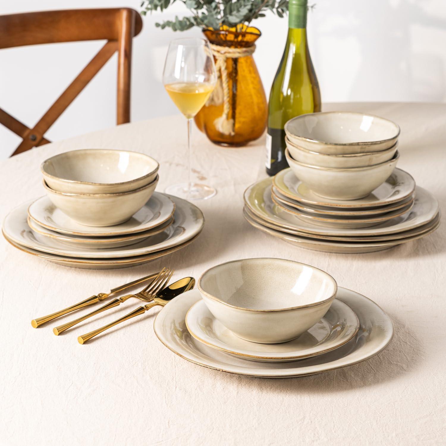 EVERY PLATE IS UNIQUE: This dinnerware set is fired with two different glazes, so the surface develops a beautiful color and makes your food look even more delicious. Since our glaze is all-natural, the surface of the plates would change color in different lighting. The color may be a tad different from what you see in the images, but every item is beautiful. Our glaze is also extra strong to prevent scratches from your knives and forks