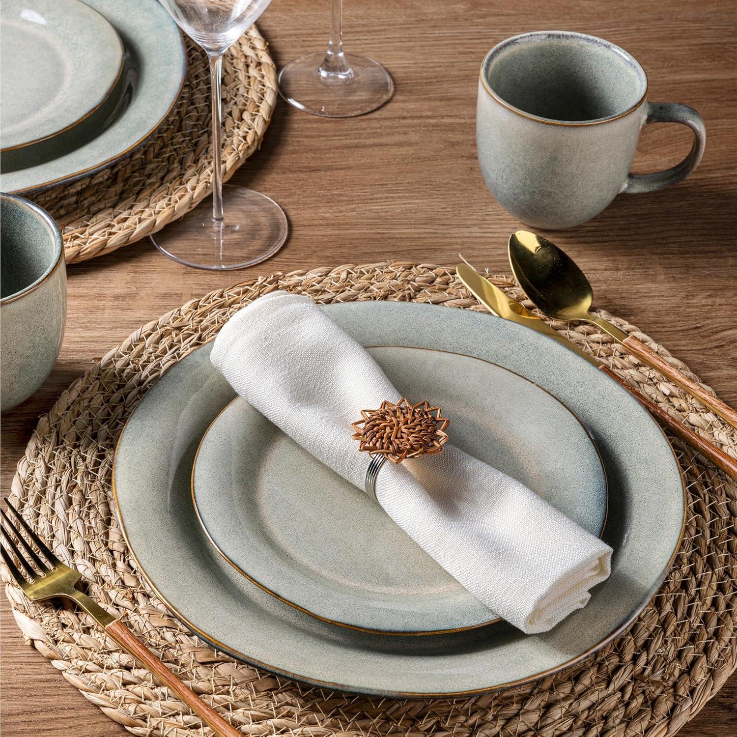 EVERY PLATE IS UNIQUE: This dinnerware set is fired with two different glazes, so the surface develops a beautiful color and makes your food look even more delicious. Since our glaze is all-natural, the surface of the plates would change color in different lighting. The color may be a tad different from what you see in the images, but every item is beautiful. Our glaze is also extra strong to prevent scratches from your knives and forks